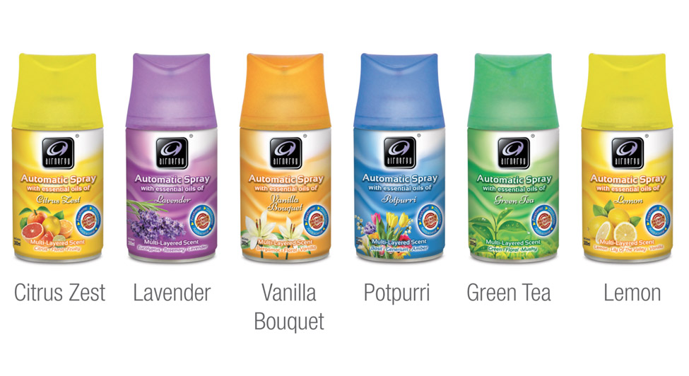 - Fragrances: Citrus Zest, Lavender, Vanilla Bouquet, Potpourri, Green Tea, Lemon